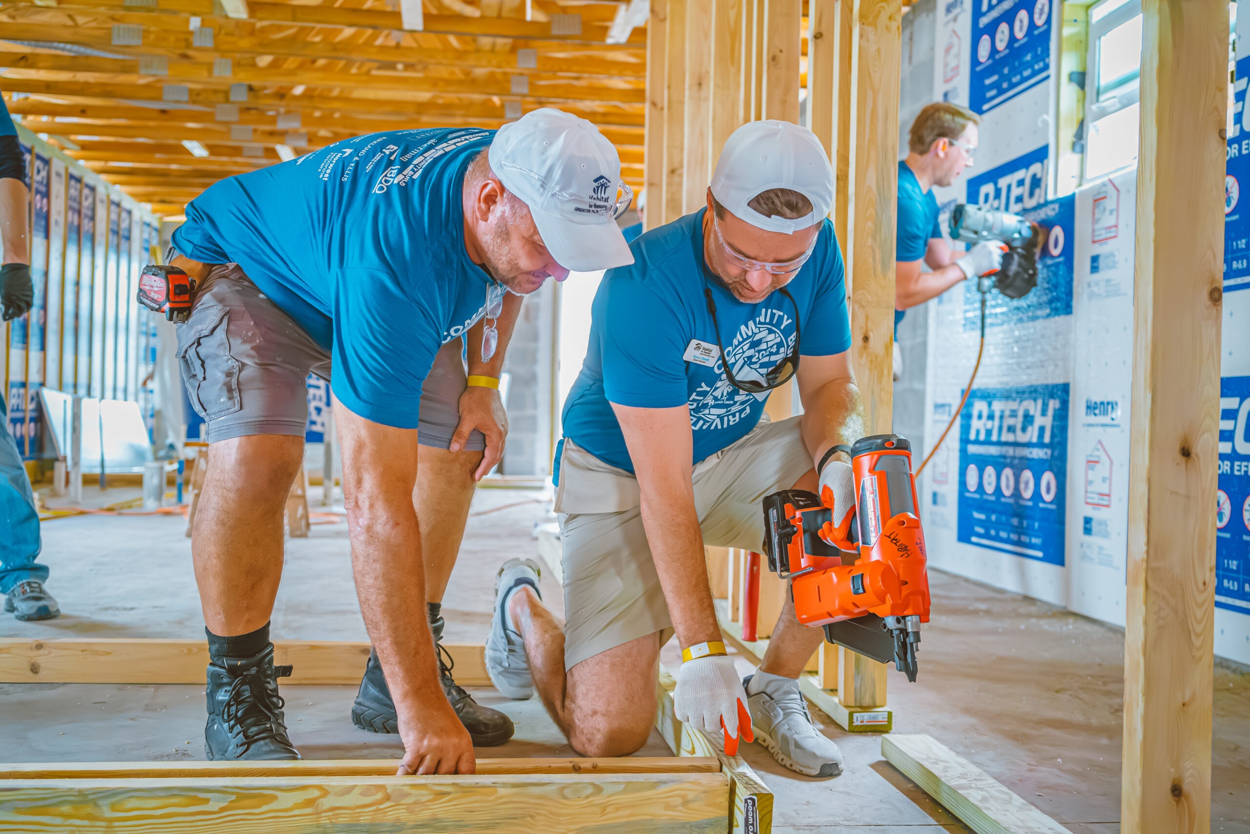 Construction volunteers work alongside our construction team and Future Homeowners building on Habitat Homes in different stages of construction. Activities include interior framing, Interior and exterior painting, landscaping, installing fences, windows, doors and more. Minimum age requirement 16.